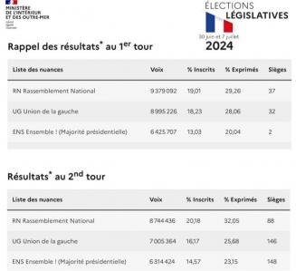 L’avance du RN au premier tour lui permettait d’escompter au moins une majorité relative. C’est aussi ce que les sondages prévirent jusqu’à 19 heures, le dimanche 7 juillet. Et puis ce fut la grande bascule ! Comme en novembre 2020, comme par magie, un abracadabra de prestidigitateur renverse le score du tout au tout. Les statistiques ont beau nous affirmer qu’un tel renversement n’a rien de naturel et provient de la main de l’homme, personne ne demande à voir le code source des algorithmes qui gèrent le résultat final. « Complètement dingue, réagit Didier Maïsto, l’ex-directeur de Sud Radio, jusqu’à 18h les divers instituts de sondage étaient sur un RN en tête (entre 210 et 230 sièges). Et puis les projections se sont inversées vers 19h. » Quelle analogie avec les présidentielles de 2022 où Le Pen était en tête et en une fraction de seconde Macron passa devant elle ! Tout comme Biden passant devant Trump à la faveur de la nuit, ce 4 novembre 2020, à la façon des voleurs pour ne pas être vus. Etrange similitude ! Qu’a-t-il pu se passer pour que « tout le monde confirme cette estimation sortie des urnes à 17h30 des élections législatives 2024 avec un RN à 230 sièges, un NFP à 150 et des macronistes à 130 ? » s’interroge Eric Verhaeghe. A 19h12 ce profil d’assemblée était encore valide, et neuf minutes plus tard tout avait basculé. Le pire est que le RN ne réclamera même pas une enquête. N’est pas Trump qui veut. Désabusée et écœurée, Patricia, une internaute, écrira : « Quelqu’un connaîtrait-il une planète qui ne soit pas un asile d’aliénés ? On pourrait organiser un voyage ? Parce que là j’en peux plus ! » On a la sensation que plus la fraude est grossière, plus les gens se mettent la tête dans le sable.